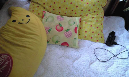 枕が3つもあります。しかも全部みごとに黄色い。